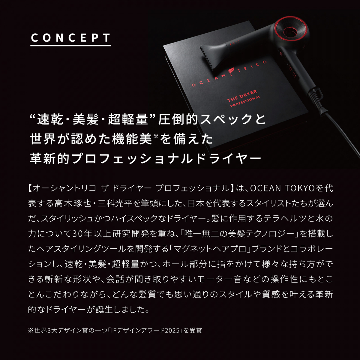プロのこだわりをカタチに。 ドライヤーはここまで進化した OCEAN TRICO THE DRYER PROFESSIONAL
