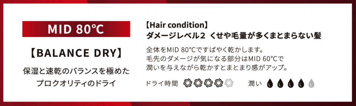 MID 60℃で潤いを与えながら乾かすとまとまり感がアップ。